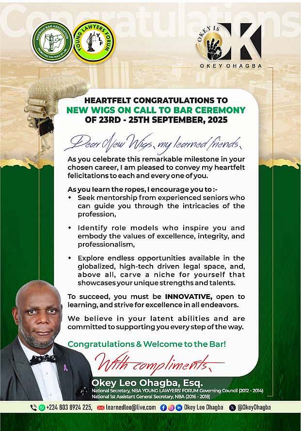 National Secretary, NBA YOUNG LAWYERS’ FORUM Governing Council (2012 – 2014) Assistant General Secretary, NBA (2016 – 2018)
