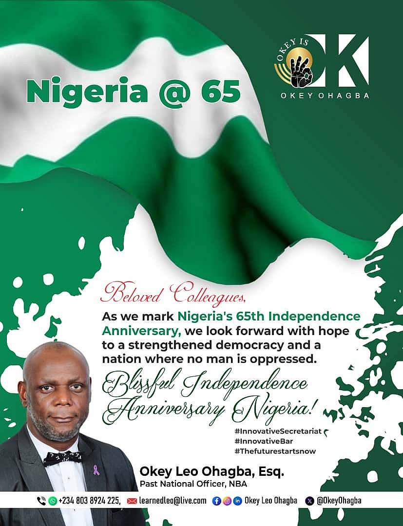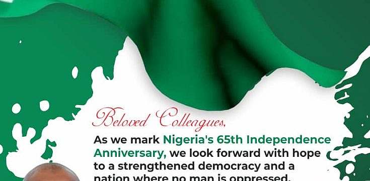 As we mark *NIGERIA’S 65TH INDEPENDENCE ANNIVERSARY,* we look forward with hope to a strengthened democracy and a nation where no man is oppressed.