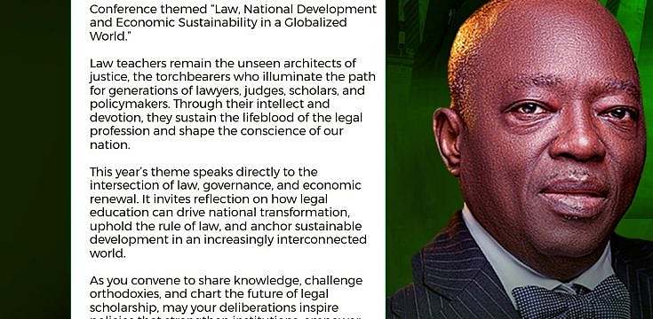 It is with profound admiration and heartfelt respect that I felicitate with the Nigerian Association of Law Teachers (NALT) on the momentous occasion of its 56th Annual Conference themed “Law, National Development and Economic Sustainability in a Globalized World.
