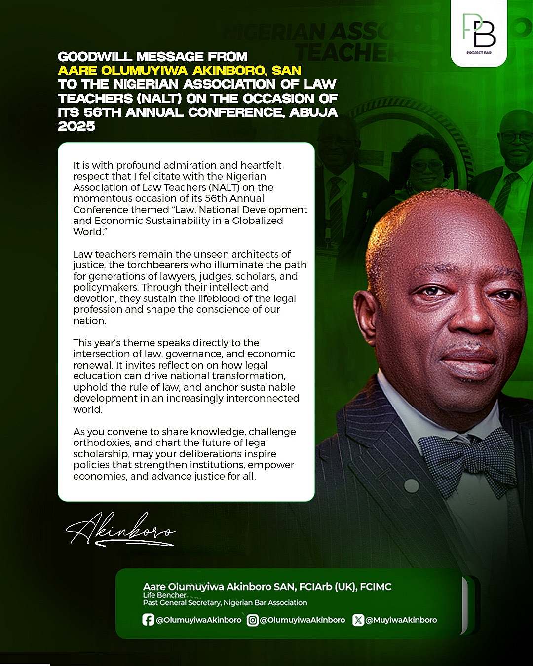 To the Nigerian Association of Law Teachers (NALT) on the occasion of its 56th Annual Conference, Abuja 2025.
