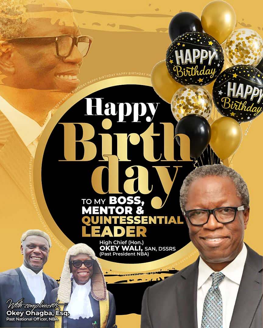 Today, I join family, colleagues, friends and well-wishers to celebrate my boss, mentor and quintessential leader; a man of honour – renowned for his impeccable integrity, stickler for professional discipline, and indeed, one of NBA’s finest, HIGH CHIEF (HON) OKEY EMMANUEL WALI, SAN, DSSRS- Past President, NBA.